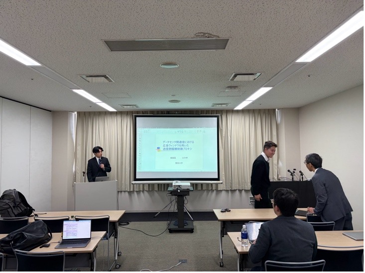 2026年3月4-6日に沖縄県那覇市・沖縄市町村自治会館で開催された、電子情報通信学会ネットワークシステム研究会にて、研究発表を行いました。今回の発表は、「データセンタ間通信における広告ウィンドウを用いた送信側輻輳制御プロキシ」について、質疑応答を含めて25分間の発表を行いました。今回の研究会は対面形式で開催され、多くの方々に聴講して頂きました。 質疑応答では、発表において特に重点を置いた箇所についての質問を頂き、とても興味を持って頂けていることを実感できました。 |